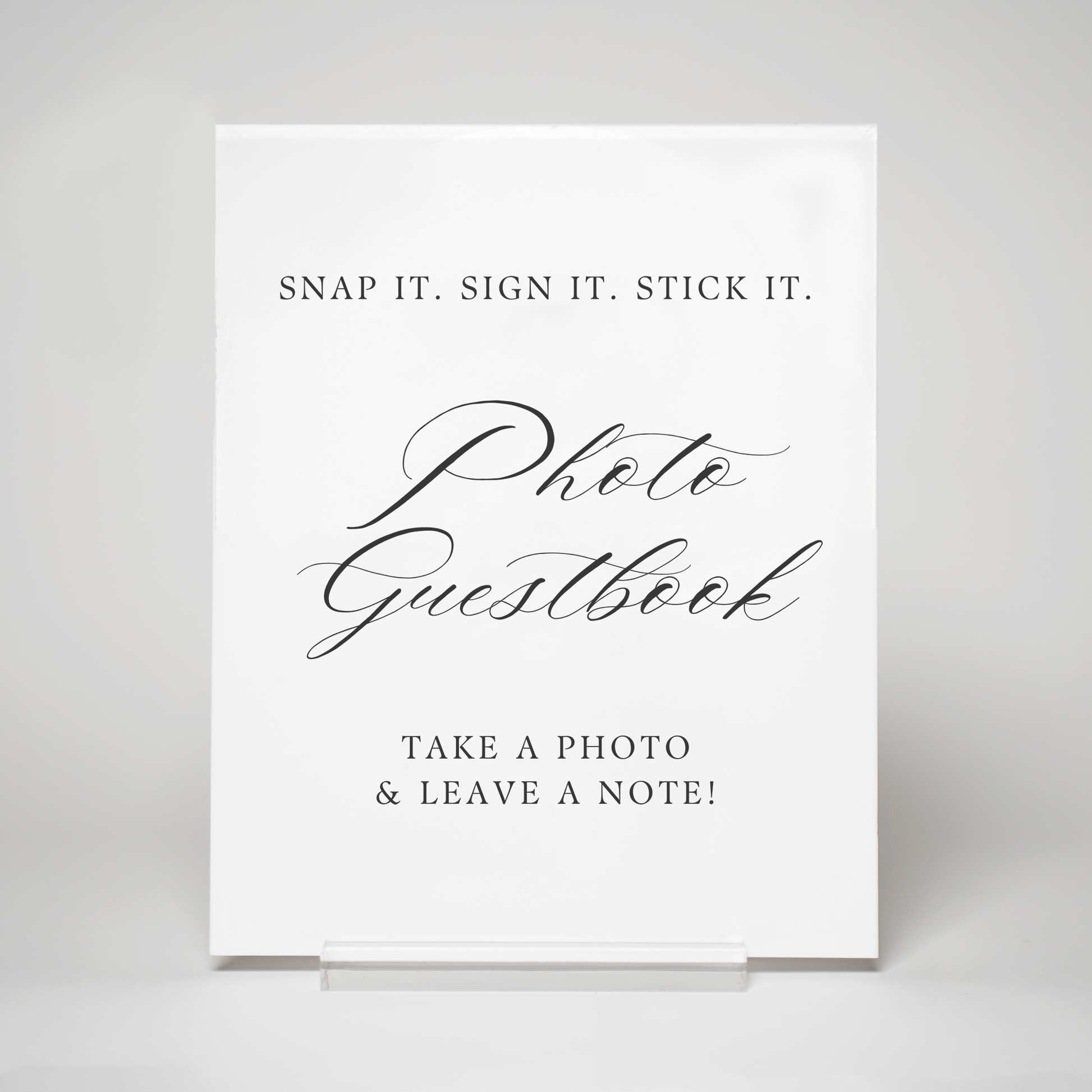 Get your guests to autograph your photo guestbook with this customizable 8" x 10" acrylic sign.