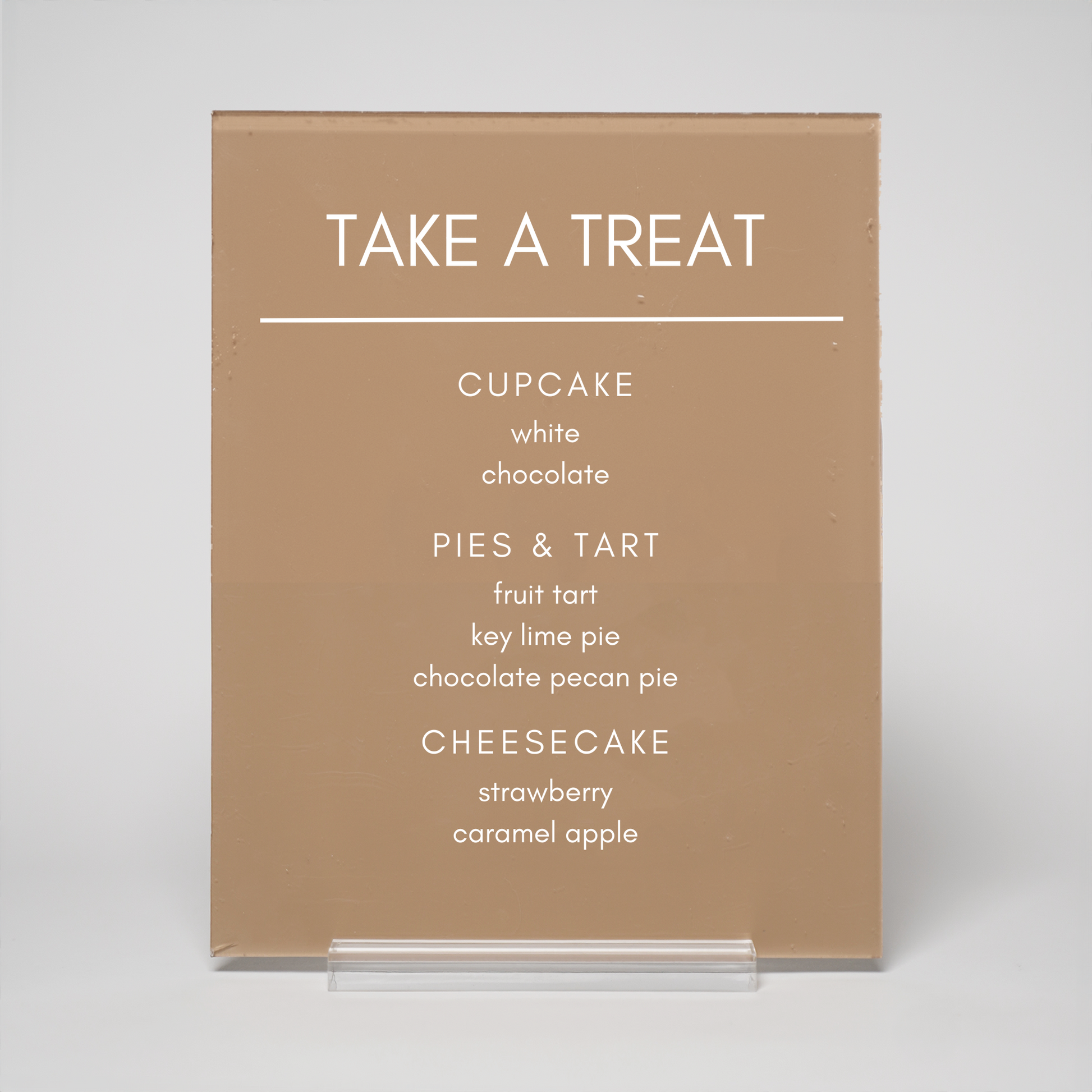 Add a special touch to your dessert table with this customizable 8" x 10" acrylic dessert menu sign.