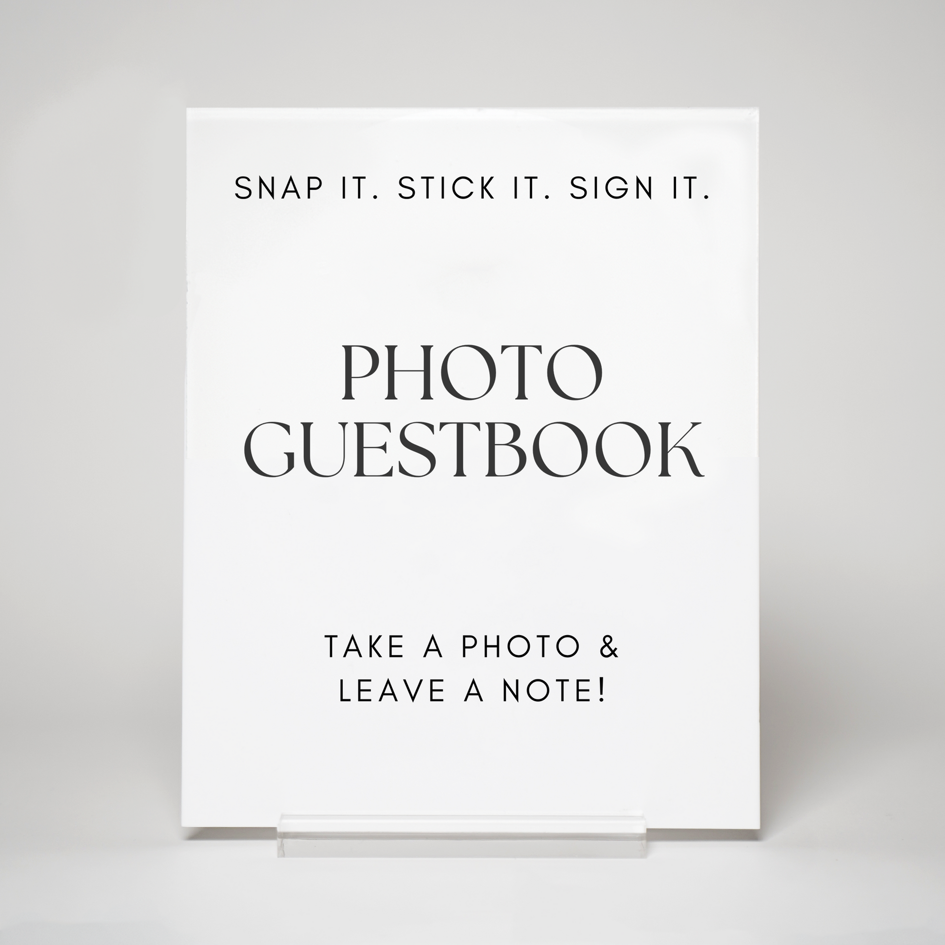 Get your guests to autograph your photo guestbook with this customizable 8" x 10" acrylic sign.